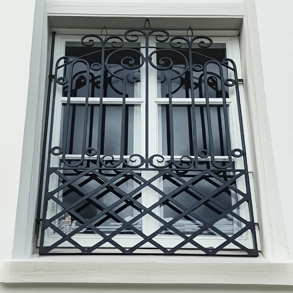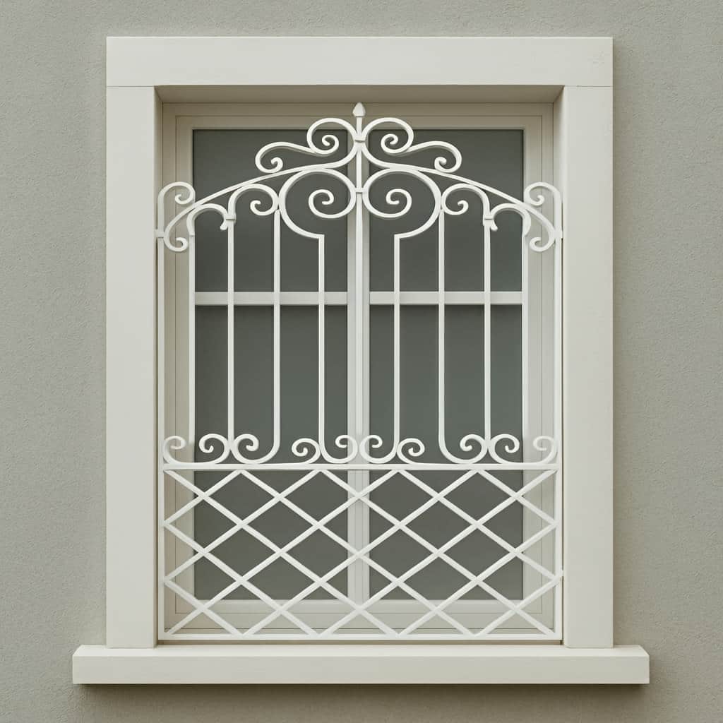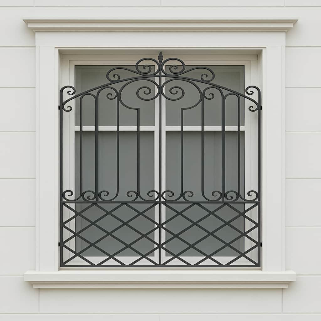 حفاظ پنجره مدل رز با قوس فرفورژه و شبکه لوزی |