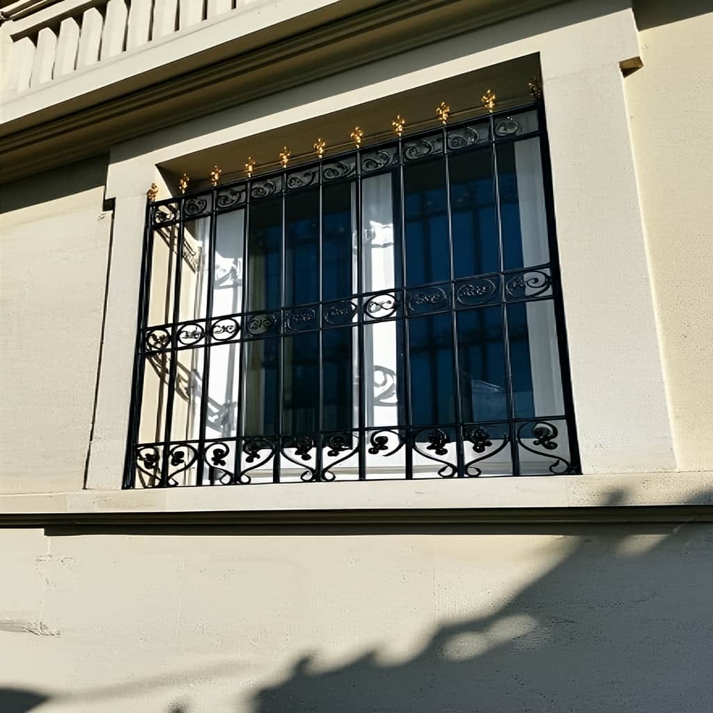 حفاظ پنجره مدل سلطنتی نیل با سرنیزه طلایی | سرنیزه های آبکاری شده طلایی علاوه بر بازدارندگی، جلوه ای خاص و چشمگیر به نمای ساختمان می بخشند. |