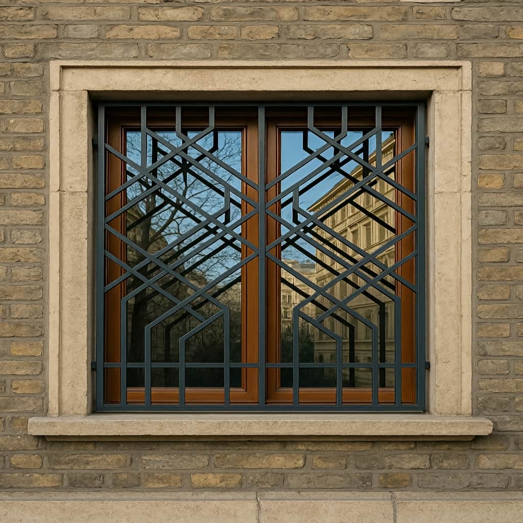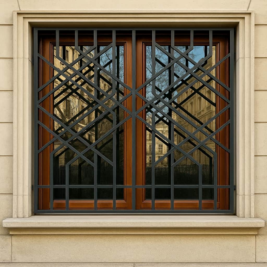 حفاظ پنجره مدل لوزی مدرن طراحی زاویه دار و هندسی بدون تزئینات سنتی, مناسب نماهای مینیمال و صنعتی است.