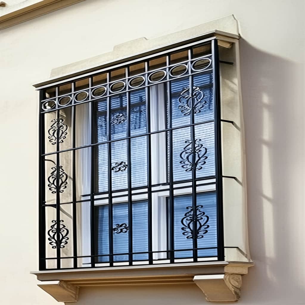 حفاظ پنجره مدل نقشینه مقاوم قاب فولادی ضخیم و جوشکاری صنعتی باعث افزایش مقاومت در برابر فشار و ضربه می شود.