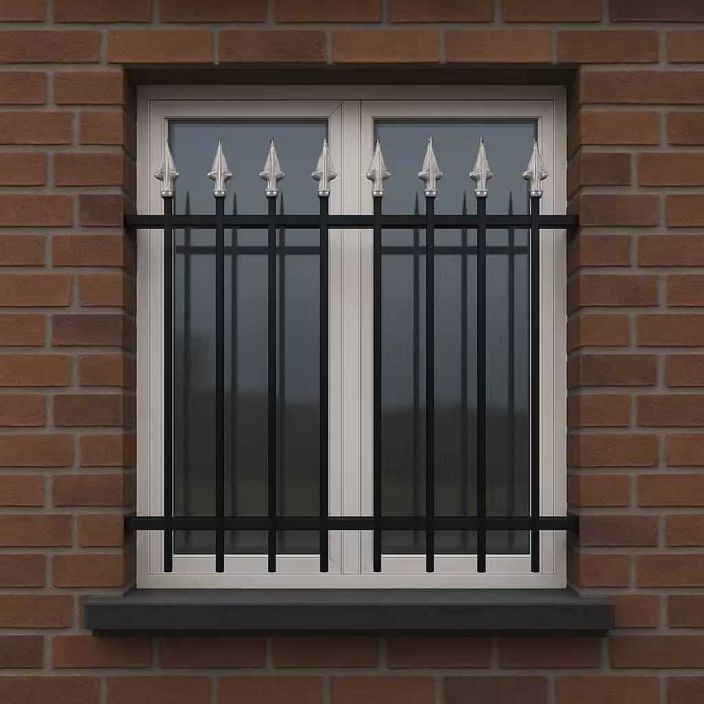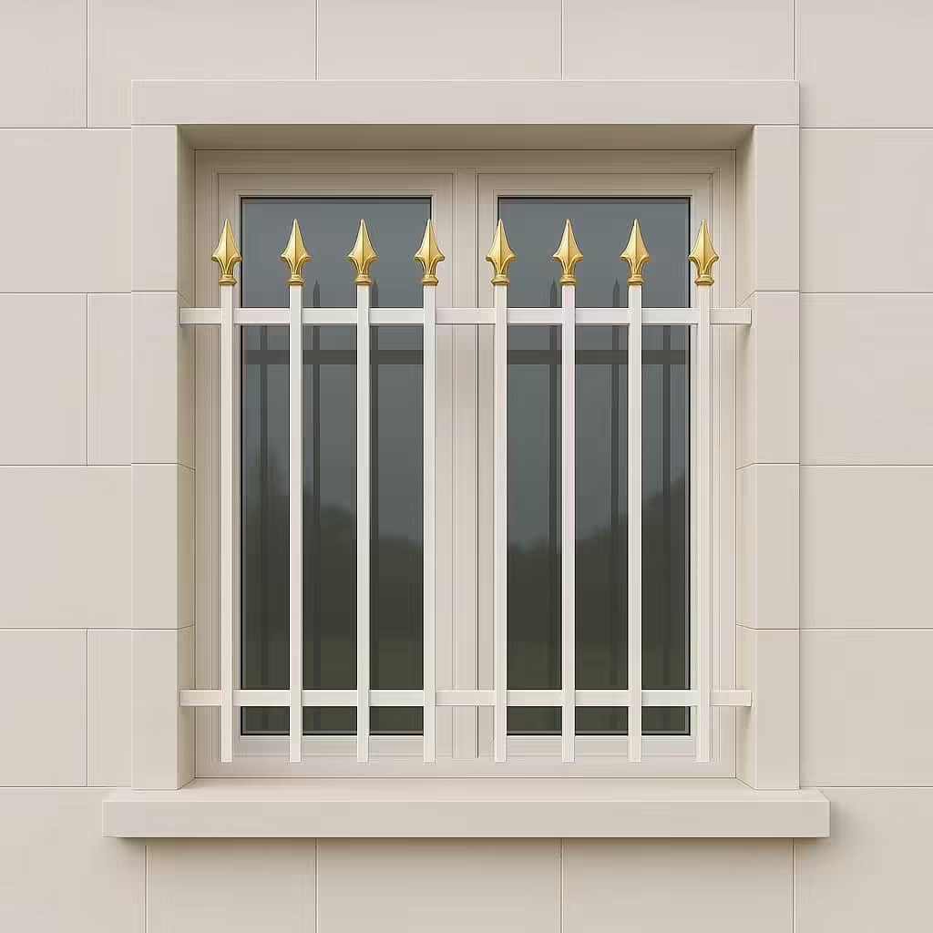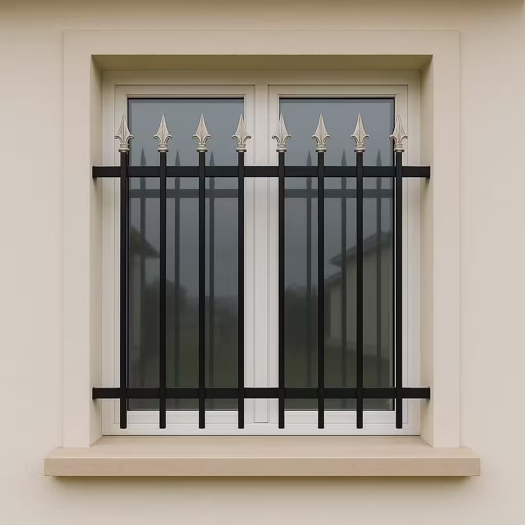 حفاظ پنجره مدل نیزه دار ساده کلاسیک | با میله های عمودی و سرنیزه های بالا، ظاهری سنتی و اصیل ایجاد می کند. |