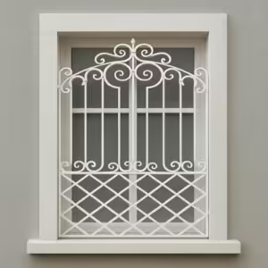 حفاظ پنجره مدل نیزه مارپیچ کلاسیک | ترکیب خطوط مارپیچی و سرنیزه های بالایی حس اصالت و امنیت سنتی را منتقل می کند. |