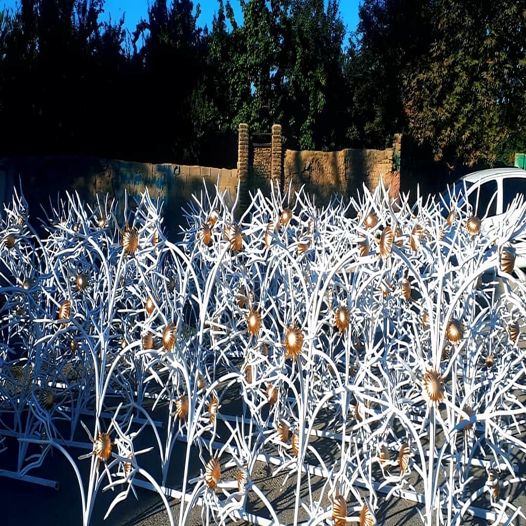 در فرآیند طراحی حفاظ گل آفتابگردان, شاخه های اصلی با میلگرد 12 میلی متری و گلبرگ های فرعی با میلگرد 8 میلی متری ساخته می شوند تا ترکیب ظاهری شبیه گل طبیعی ایجاد گردد. هر شاخه با طول 2 متر تولید شده و در هر شاخه معمولاً 4 گل تعبیه می شود که در مجموع پوشش کامل سطح دیوار را فراهم می کند. عرض حفاظ حدود 50 سانتی متر و ارتفاع آن بسته به نیاز کارفرما 60, 80 یا 100 سانتی متر است. مزیت اصلی این مدل, زیبایی منحصر به فرد و همزمان بازدارندگی امنیتی بالا است. محدودیت احتمالی آن وزن نسبتاً زیاد در تراکم های بالا می باشد که نصب را نیازمند تیم حرفه ای می سازد. سناریوی خرید معمول شامل انتخاب ارتفاع متناسب با دیوار, بررسی تراکم گل ها و سپس تعیین رنگ پوشش می باشد. خدمات پس از فروش شامل بازبینی سالانه و ریتاچ رنگ در صورت نیاز ارائه می گردد. بازه قیمت حدودی این مدل بین 1/506/000 تا 3/194/000 تومان به ازای هر متر است و با متراژ نهایی تغییر می کند. سطر شواهد: در تست مقاومت فشاری, شاخه های 12 میلی متری تا 380 نیوتن نیرو را بدون تغییر شکل تحمل کردند. «قیمت تقریبی = متراژ × نرخ پایه × ضریب متریال».