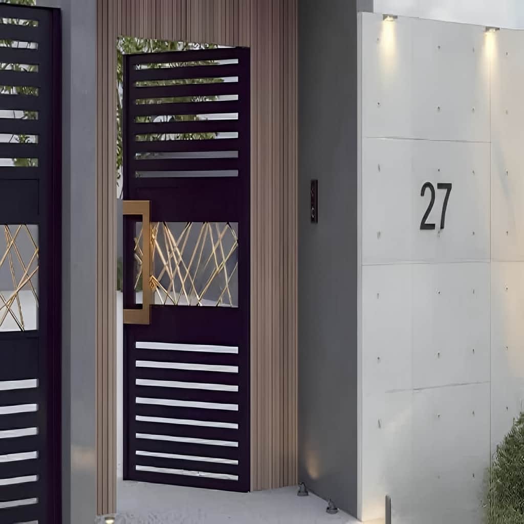 این درب با استفاده از خطوط افقی یا عمودی ساده طراحی شده تا حس نظم و مدرنیته را به ورودی منتقل کند. ظاهر آن مینیمال, بدون زواید اضافی و هماهنگ با معماری های مدرن شهری است. |